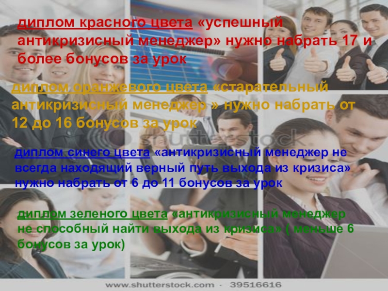 диплом оранжевого цвета «старательный антикризисный менеджер » нужно набрать от 12 до 16 бонусов за урок