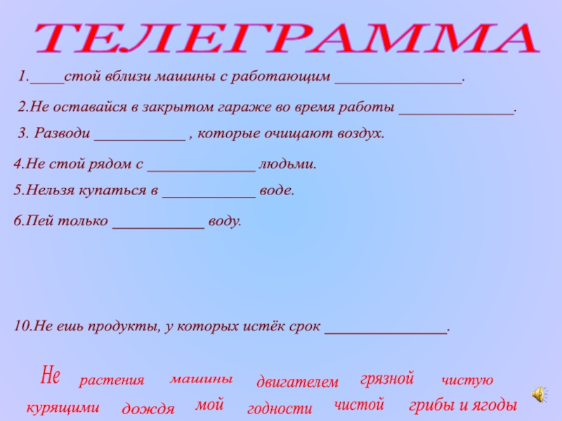 8.Не собирай _________________ вблизи дорог, заводов, свалок.