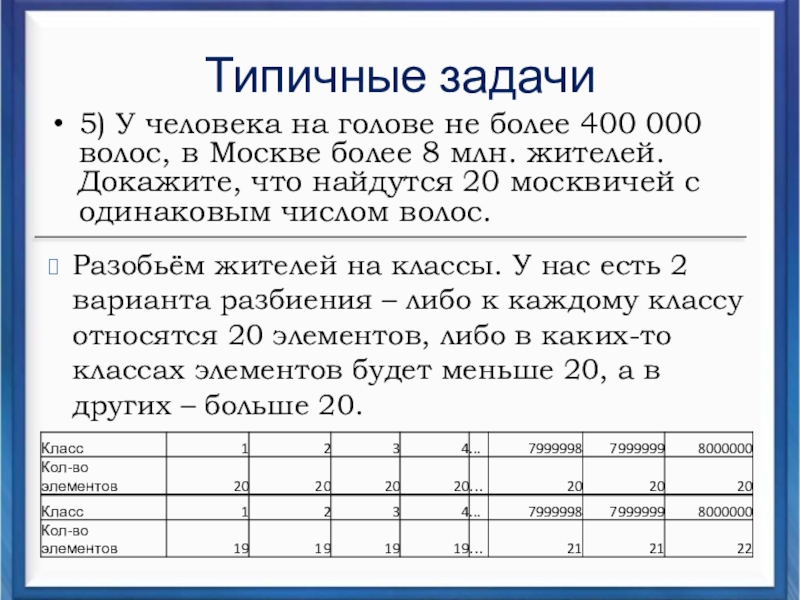Разобьём жителей на классы. У нас есть 2 варианта разбиения – либо к каждому классу относятся 20 элементов, либо в каких-то классах элементов будет меньше 20, а в других – больше 20.