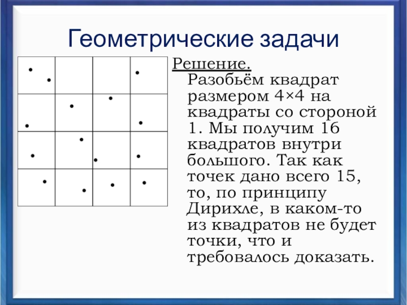 9 клеток содержат 10 голубей, по принципу Дирихле хотя бы в одной клетке находятся более одного голубя