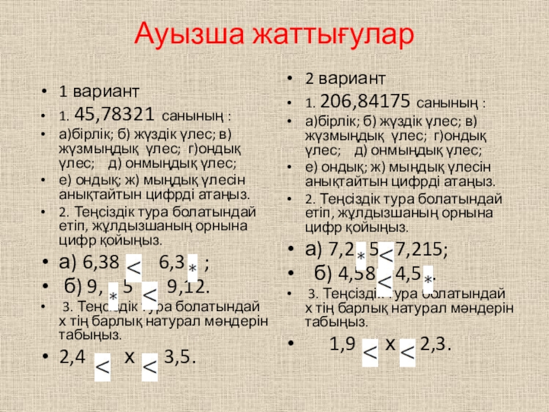 2. Теңсіздік тура болатындай етіп, жұлдызшаның орнына цифр қойыңыз.