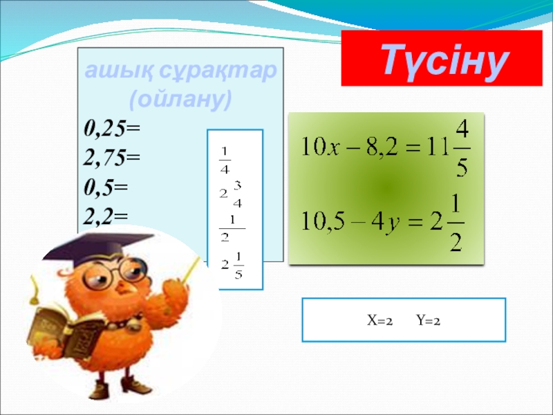Түсінуашық сұрақтар(ойлану)0,25= 2,75=0,5=  2,2=      Х=2   Y=2