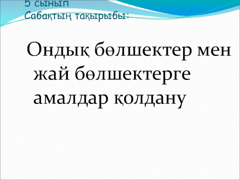 Презентация, доклад на тему Ондық бөлшектер мен жай бөлшектерге амалдар қолдану 5 сынып.