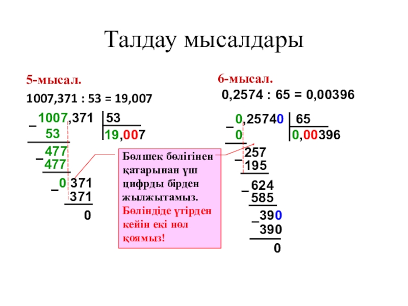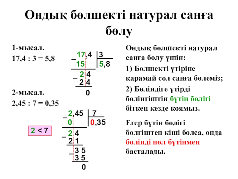 2) Осыдан кейін ондық бөлшекті натурал санға бөлуді орындау керек.