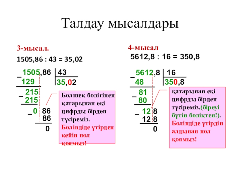2) Бөліндіге үтірді бөлінгіштін бүтін бөлігі біткен кезде қоямыз.