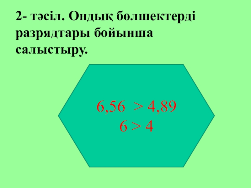 2- тәсіл. Ондық бөлшектерді разрядтары бойынша салыстыру.6,56 > 4,896 > 4