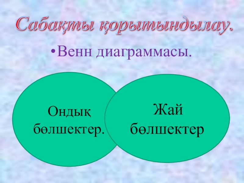 Сабақты қорытындылау. .Венн диаграммасы.Ондық бөлшектер. Жай   бөлшектер