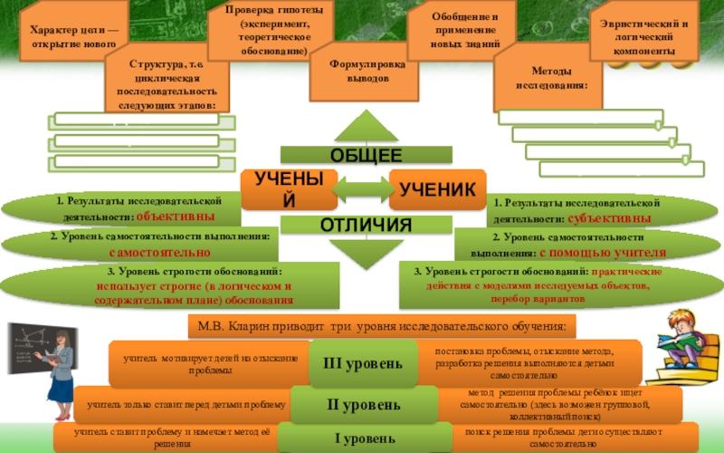 М.В. Кларин приводит три уровня исследовательского обучения: