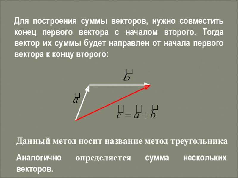 Аналогично определяется сумма нескольких векторов.