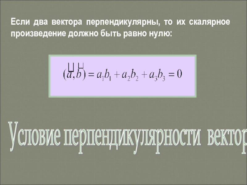 Условие перпендикулярности векторов