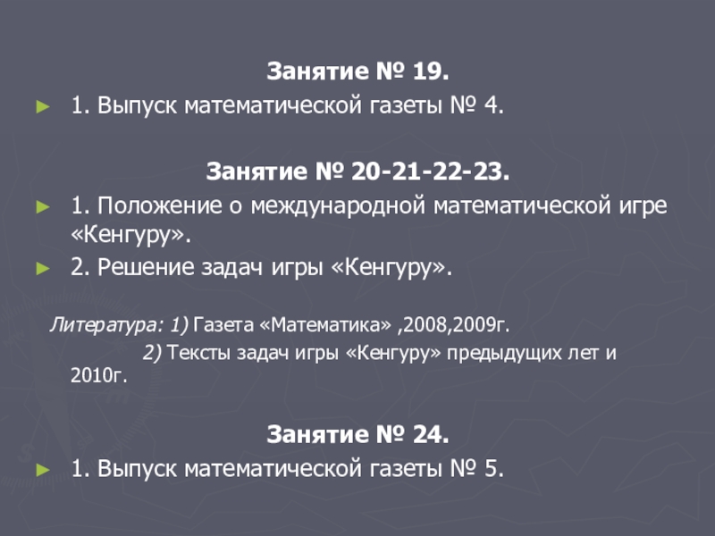 Литература: 1) Газета «Математика» ,2008,2009г.