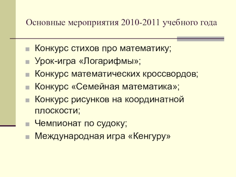 Слайд 23Основные мероприятия 2010-2011 учебного года