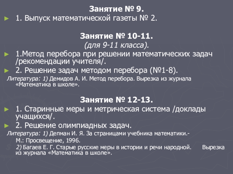 Литература: 1) Демидов А. И. Метод перебора. Вырезка из журнала «Математика в школе».
