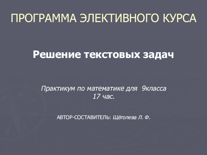 Слайд 19ПРОГРАММА ЭЛЕКТИВНОГО КУРСА