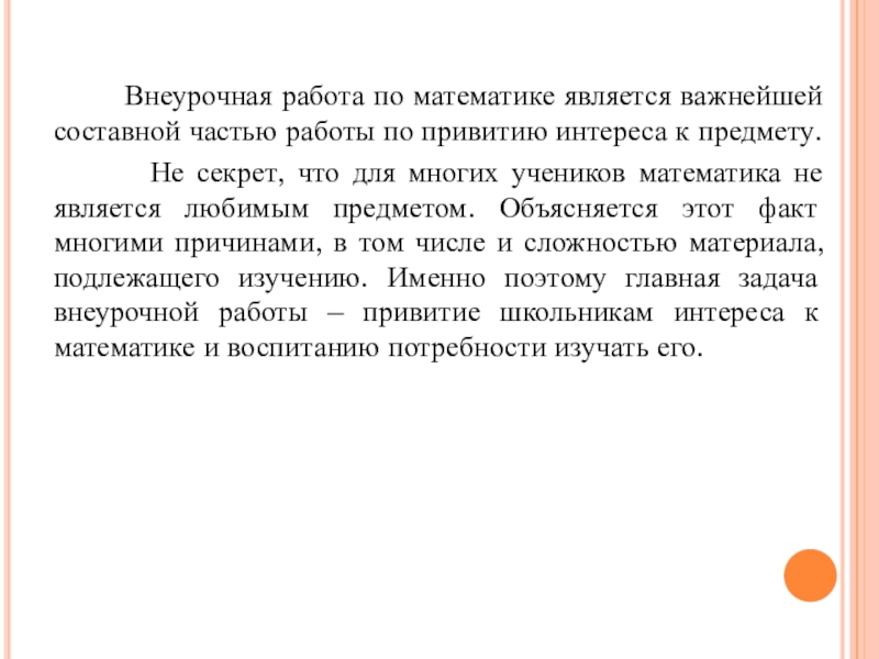 Слайд 3 Внеурочная работа по математике является важнейшей составной