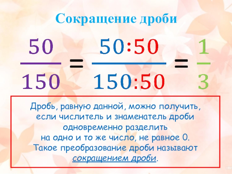 разделить на одно и то же число, не равное 0. Такое преобразование дроби называют сокращением дроби.