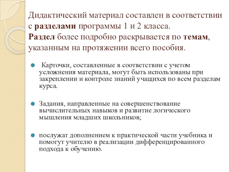Карточки, составленные в соответствии с учетом усложнения материала, могут быть использованы при закреплении и контроле знаний учащихся по всем разделам курса.