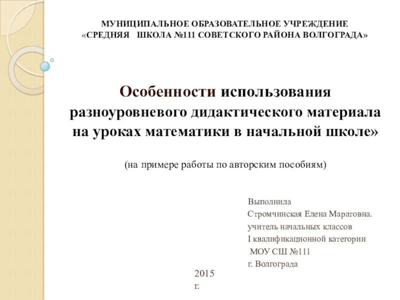 Е.М Стромчинская. – Волгоград; 2009. Учитель. – 175 с.