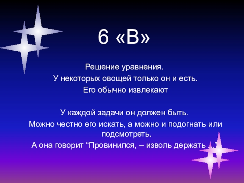 7. Найдите решение уравнения: 3х – 8 = х + 6.
