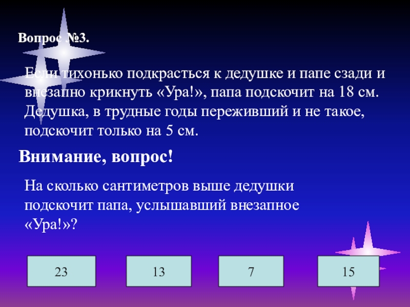 На сколько сантиметров выше дедушки подскочит папа, услышавший внезапное «Ура!»?