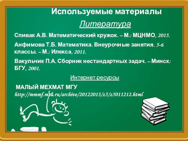 Спивак А.В. Математический кружок. – М.: МЦНМО, 2015.