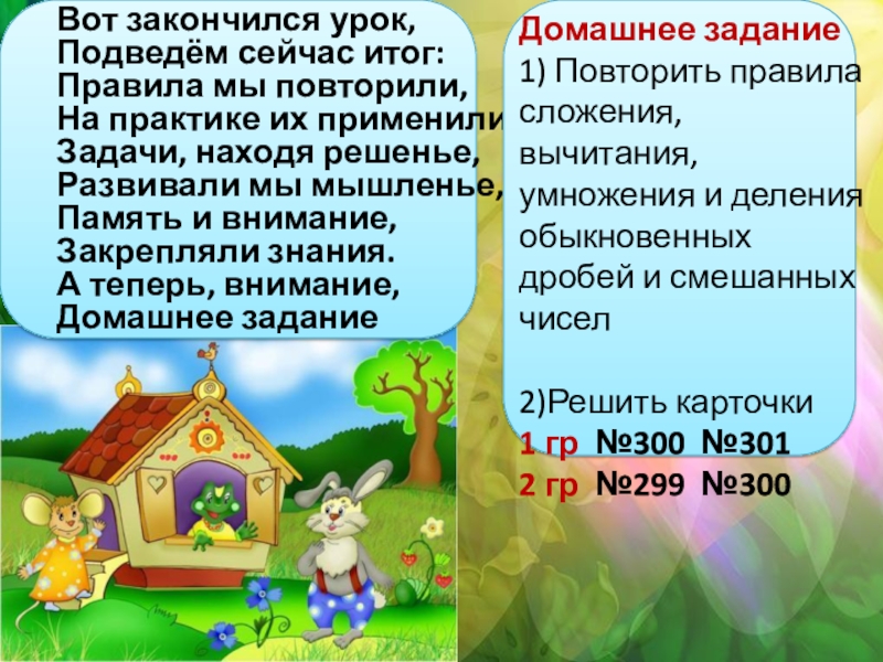 1) Повторить правила сложения, вычитания, умножения и деления обыкновенных дробей и смешанных чисел