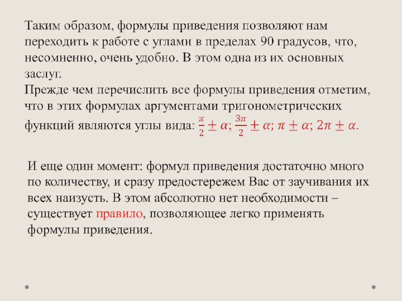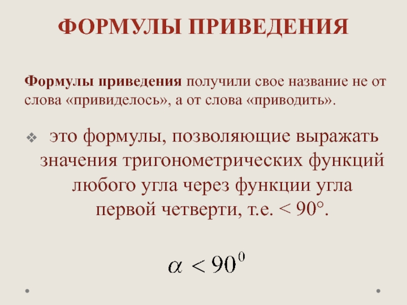 Формулы приведения получили свое название не от слова «привиделось», а от слова «приводить».