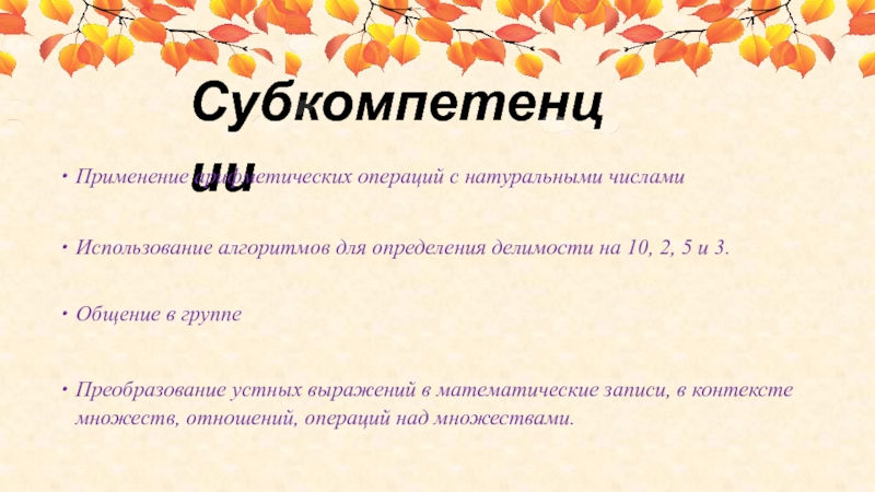Преобразование устных выражений в математические записи, в контексте множеств, отношений, операций над множествами.
