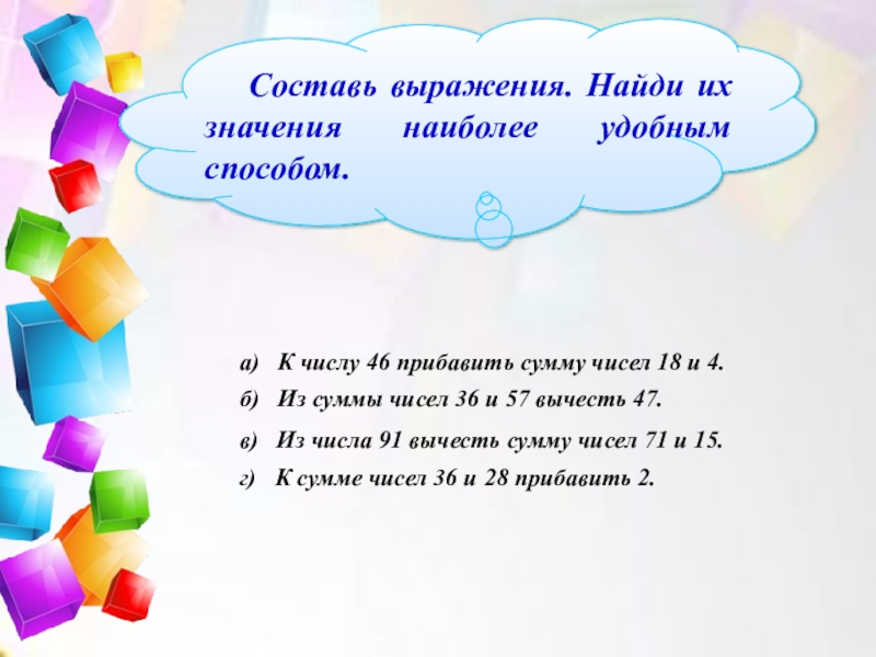 Составь выражения. Найди их значения наиболее удобным способом.
