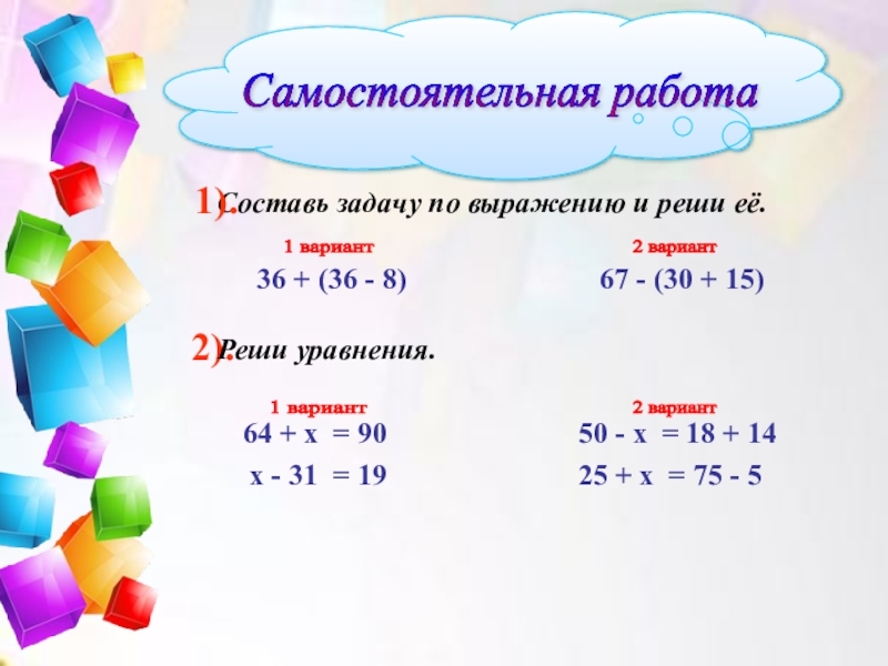 4) Найди уравнение и реши.