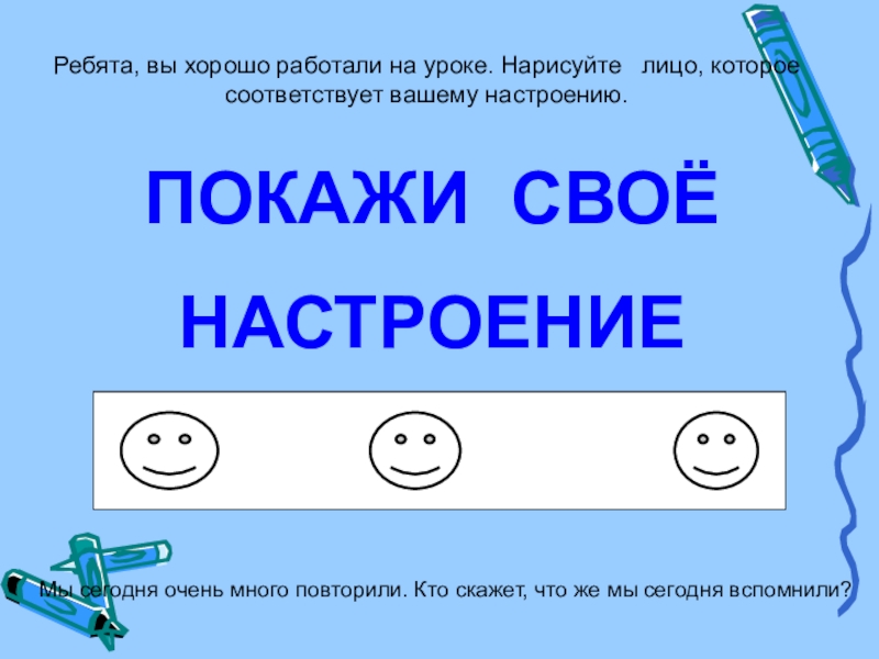 Мы сегодня очень много повторили. Кто скажет, что же мы сегодня вспомнили?
