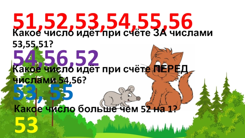 Какое число идёт при счёте ПЕРЕД числами 54,56?