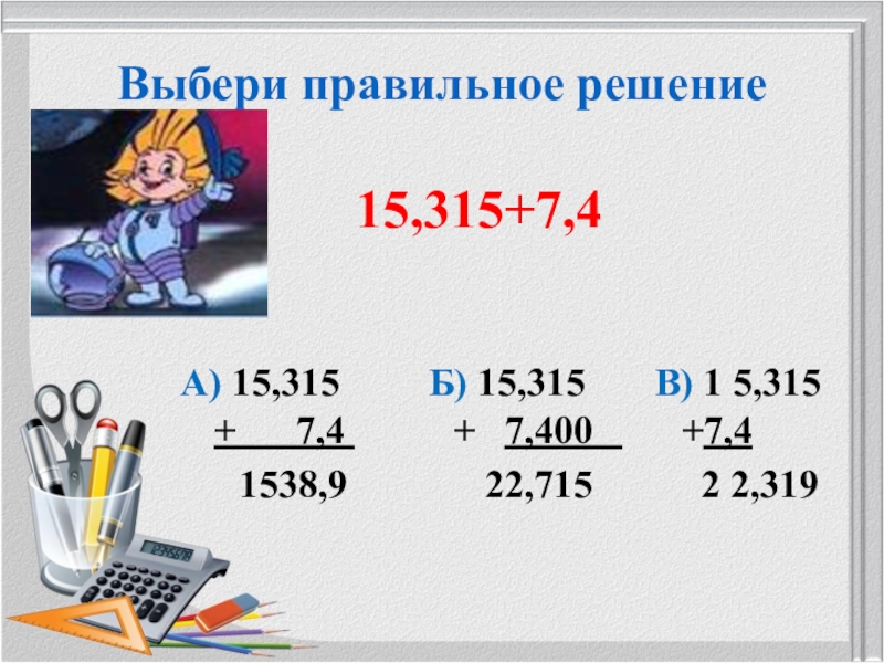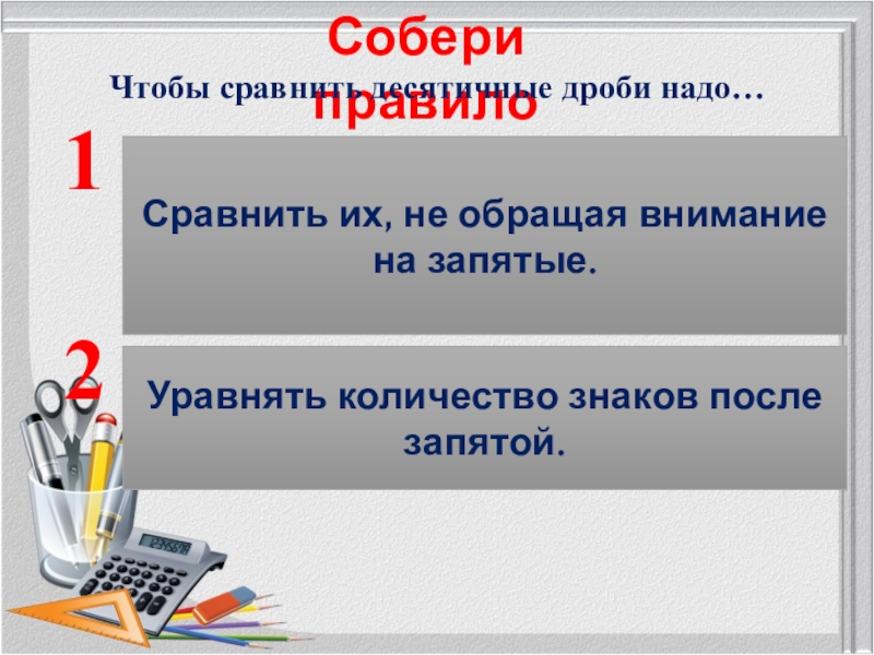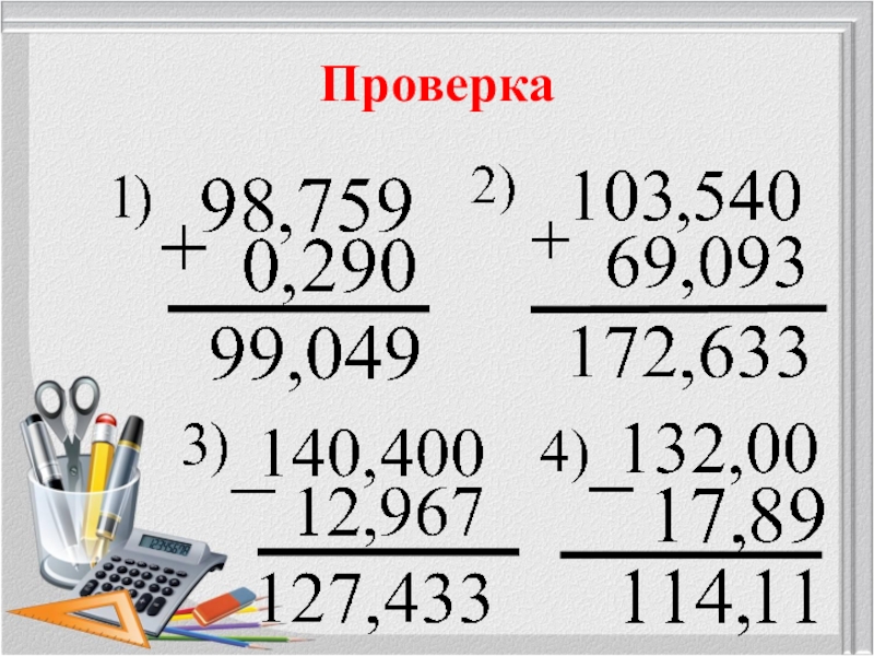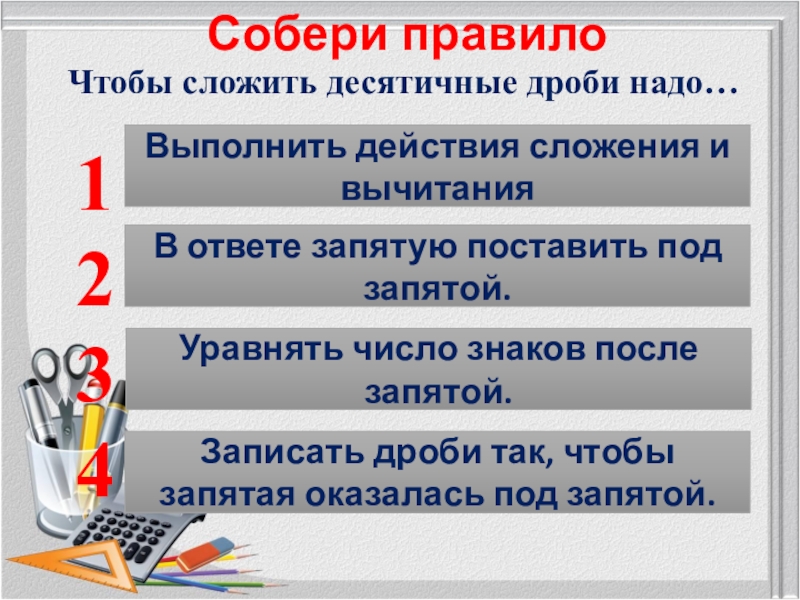 Записать дроби так, чтобы запятая оказалась под запятой.