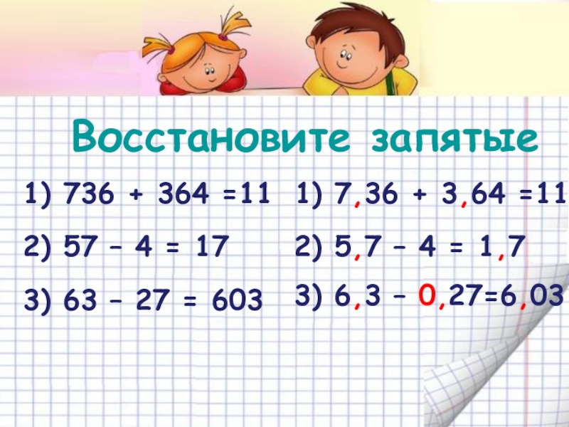 3) 6,3 – 0,27=6,03
