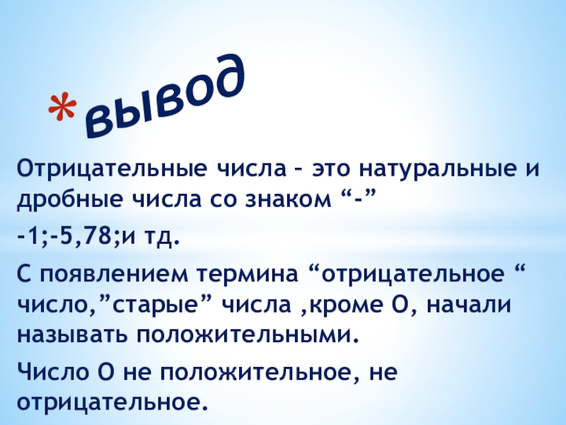 ПОЛОЖИТЕЛЬНЫЕ И ОТРИЦАТЕЛЬНЫЕ ЧИСЛА