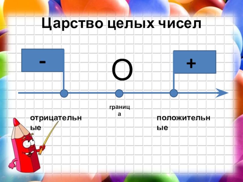 Царство целых чиселОположительныеотрицательныеграница+-