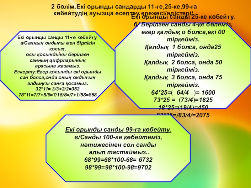 Екі орынды сандарды 11-ге,25-ке,99-ға