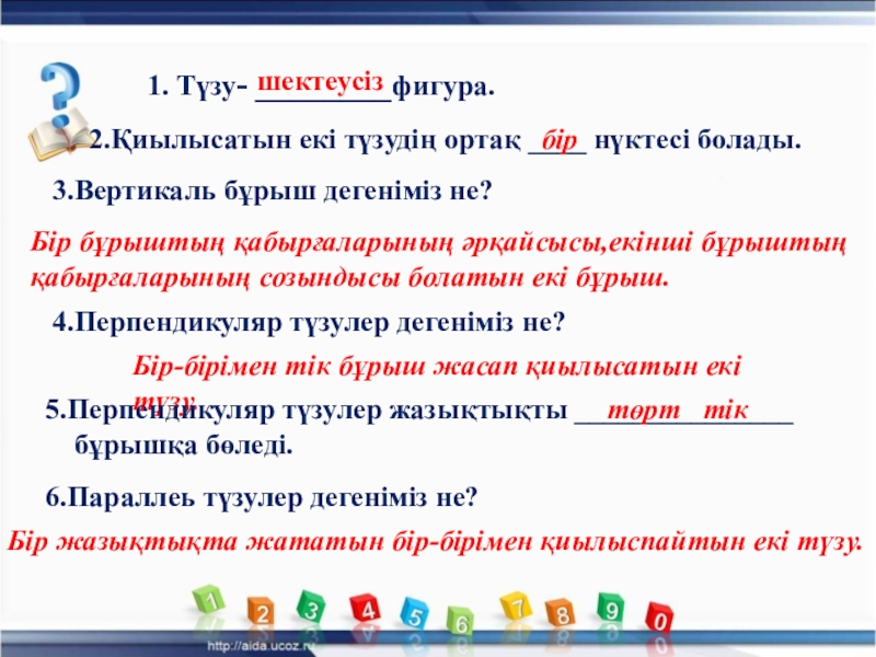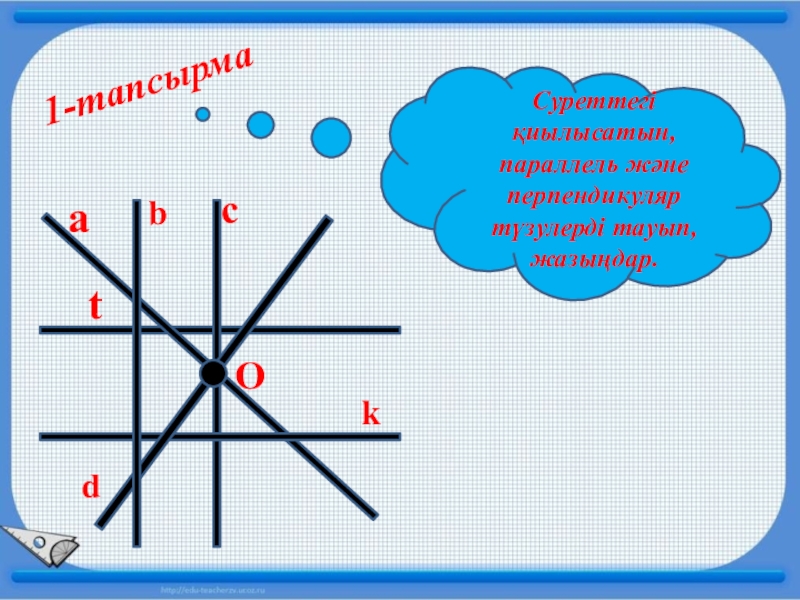 Бір-бірімен тік бұрыш жасап қиылысатын екі түзу.