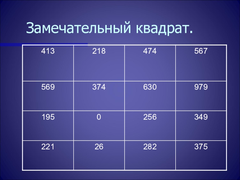 Слайд 12Замечательный квадрат.