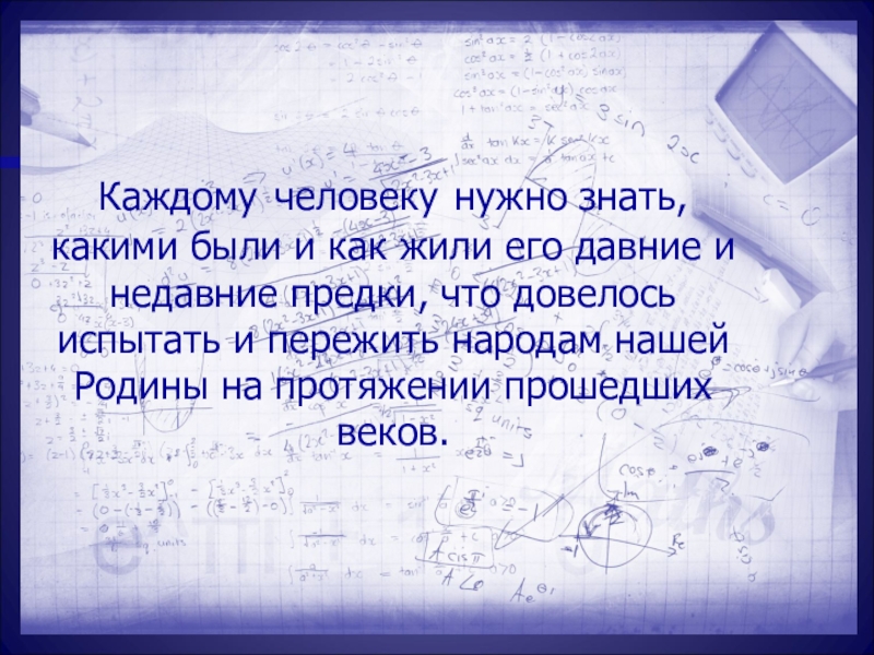 Слайд 4Каждому человеку нужно знать, какими были и как жили его давние