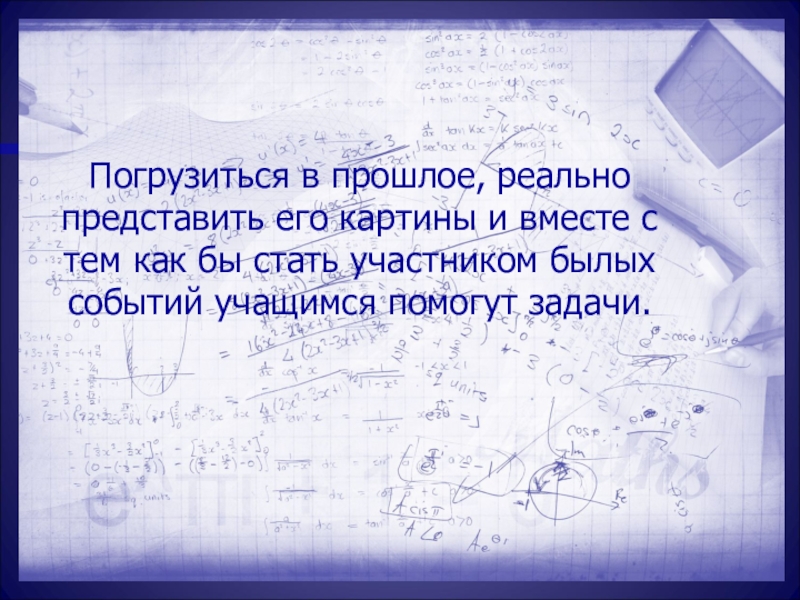 Слайд 7Погрузиться в прошлое, реально представить его картины и вместе с тем