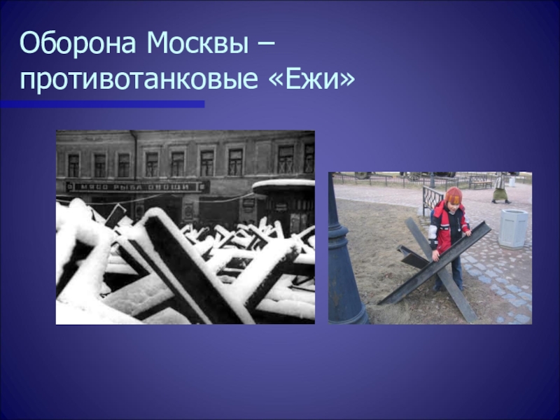 Слайд 24Оборона Москвы – противотанковые «Ежи»
