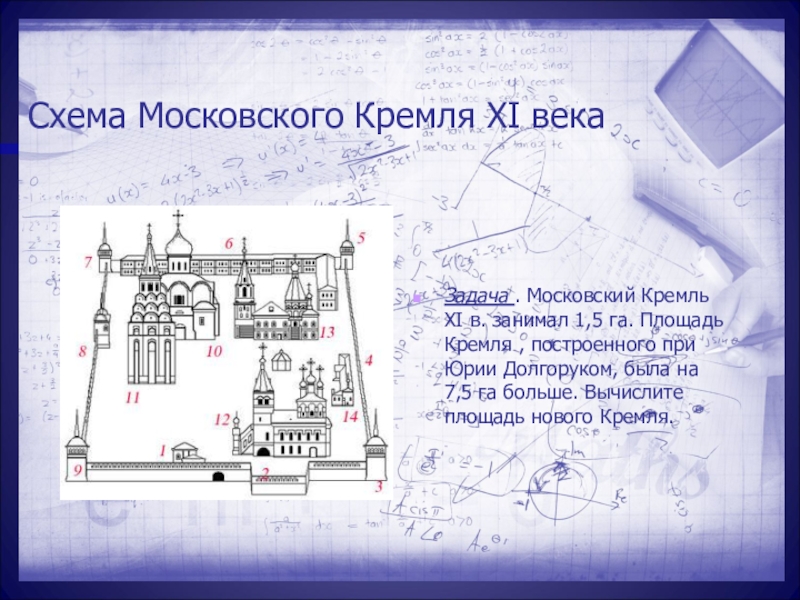 Задача . Московский Кремль XI в. занимал