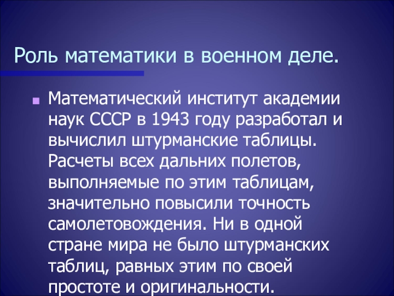 Вклад ученых математиков в оборонную мощь страны во время
