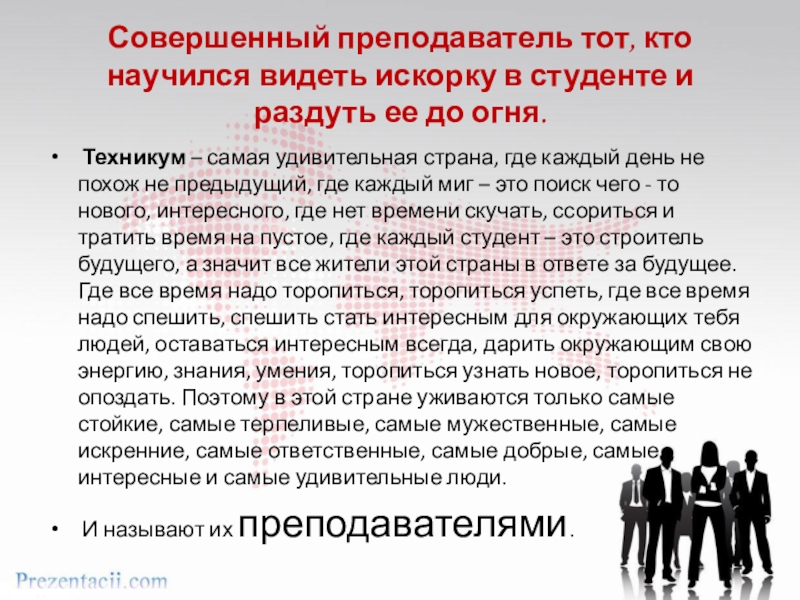 необходимо воодушевлять студентов максимально быть самими собой, ободрять каждого, чтобы он гордился своими достижениями;