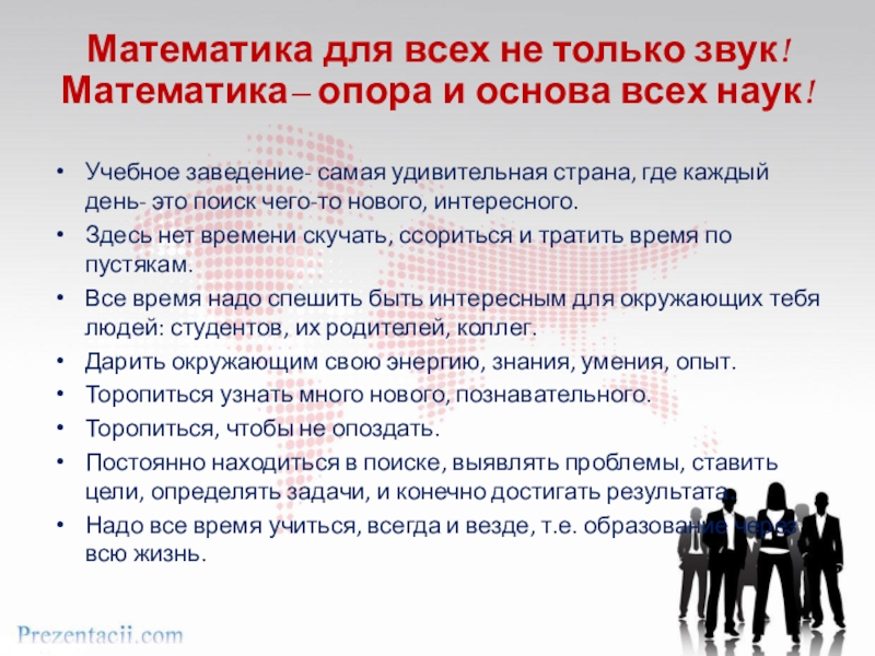 научить студентов быть независимыми. Чем больше мы для них делаем, тем меньше они учатся делать для себя сами;