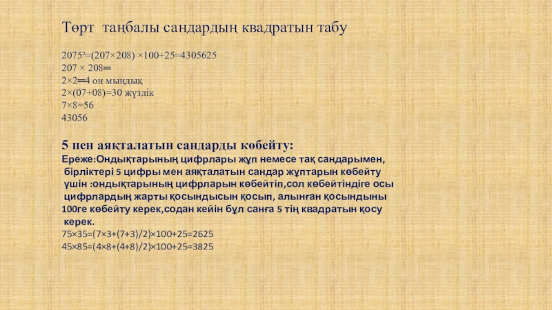 Жасын және туылған күнің табу.Оқушының жасын және туылған күнін табу үшін төмендегі амалдарды орындау керек: Туылған айдың реттік нөмірін 100 ге көбейтуді,алынған көбейтіндіге туылған айдың числосын қосуды ,алынған қосындыны 2 ге көбейтіп,ол санға 8 ді қосып, сосын 5 ке көбейтуді,алынған