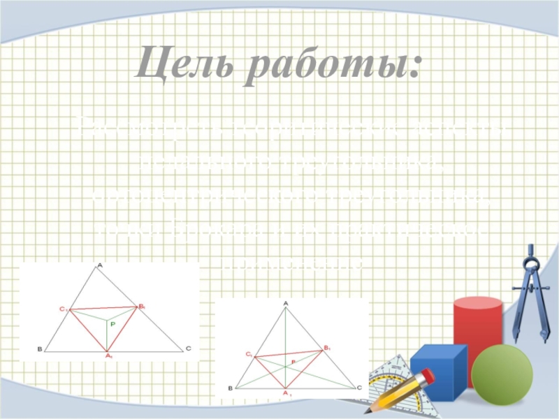 Слайд 1Тема работы: Педальный треугольник и его свойства