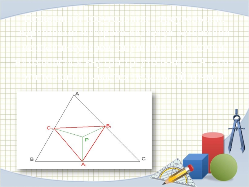 Педальный треугольник - треугольник, вершинами которого является основания перпендикуляров, опущенных из точки, находящейся внутри треугольника. А сама