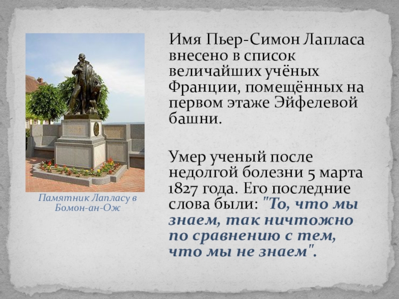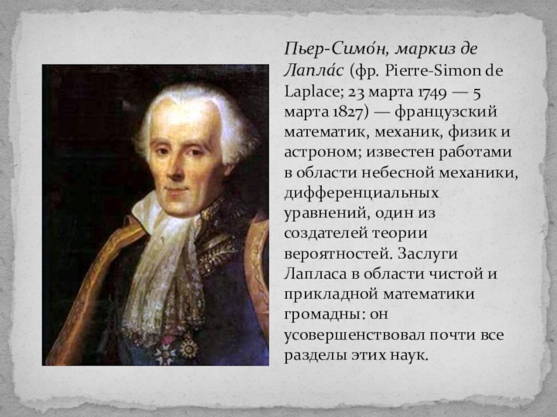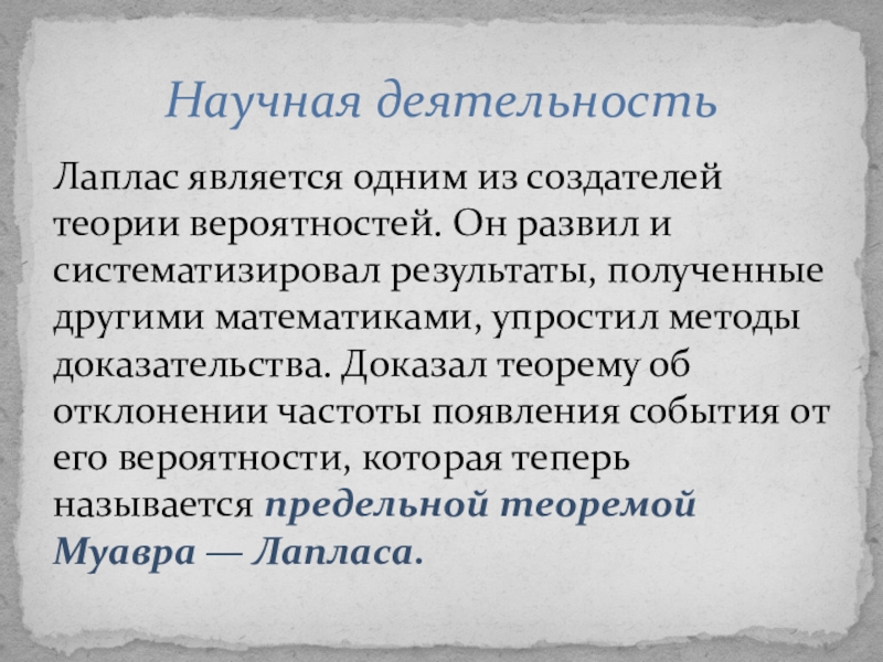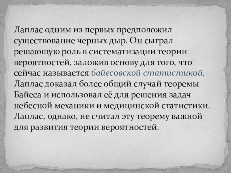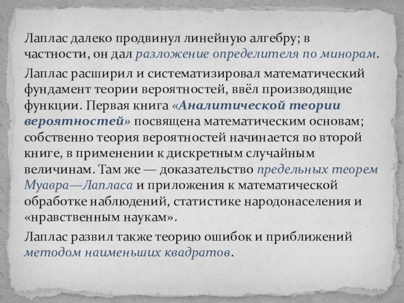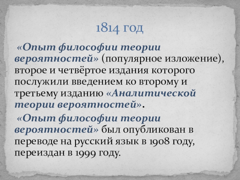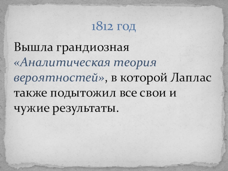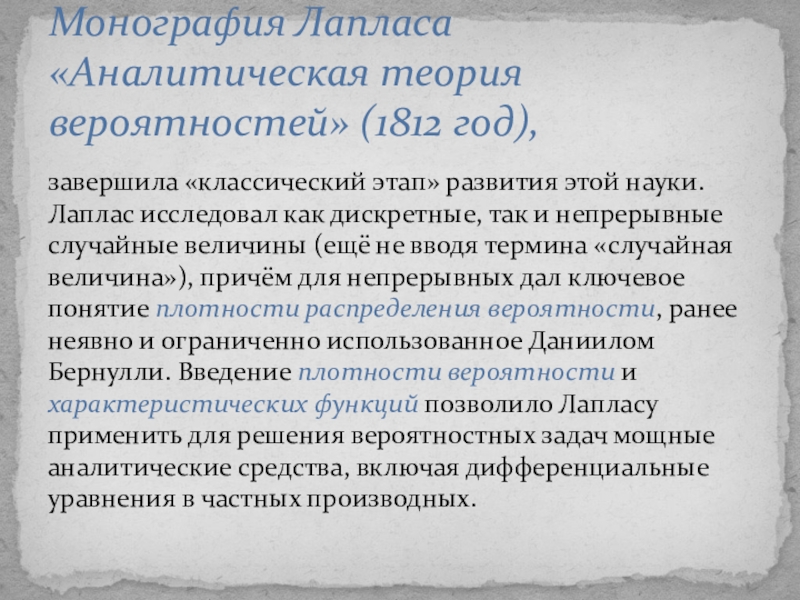 Монография Лапласа «Аналитическая теория вероятностей» (1812 год),